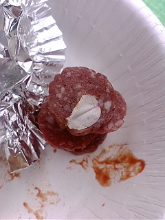 サラミの上に花びらが落ちてきてて…何だか風流でしたよ。